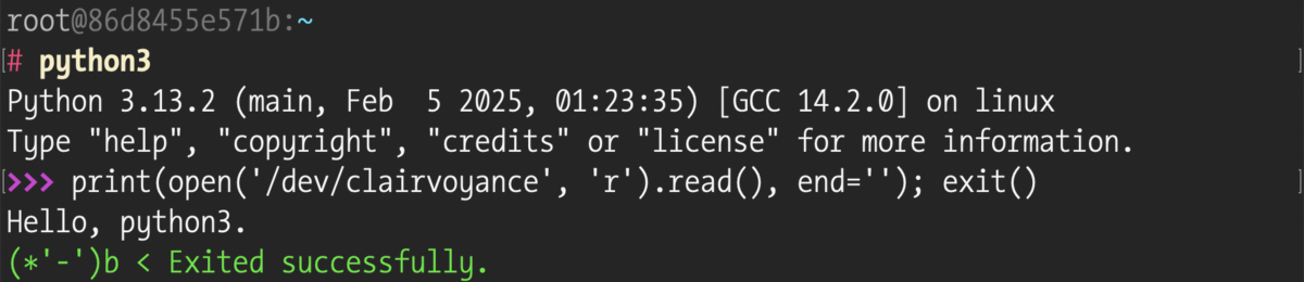 clairvoyance は、通常は知覚するのが不可能と考えられている情報を得る能力を指します。千里眼や透視などと訳されることもあります。 読まれるファイル側が読む側のコマンドを知覚するのは通常はあり得ないと考えられていそうなので、そういう名前をつけました。